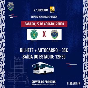 A venda de bilhetes para o encontro entre o Sporting CP e o GD Chaves, referente à 4.ª jornada da Liga Bwin, está disponível na Secretaria do Clube para sócios e não sócios do GD Chaves.